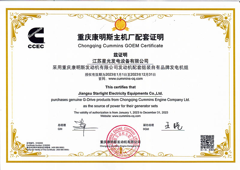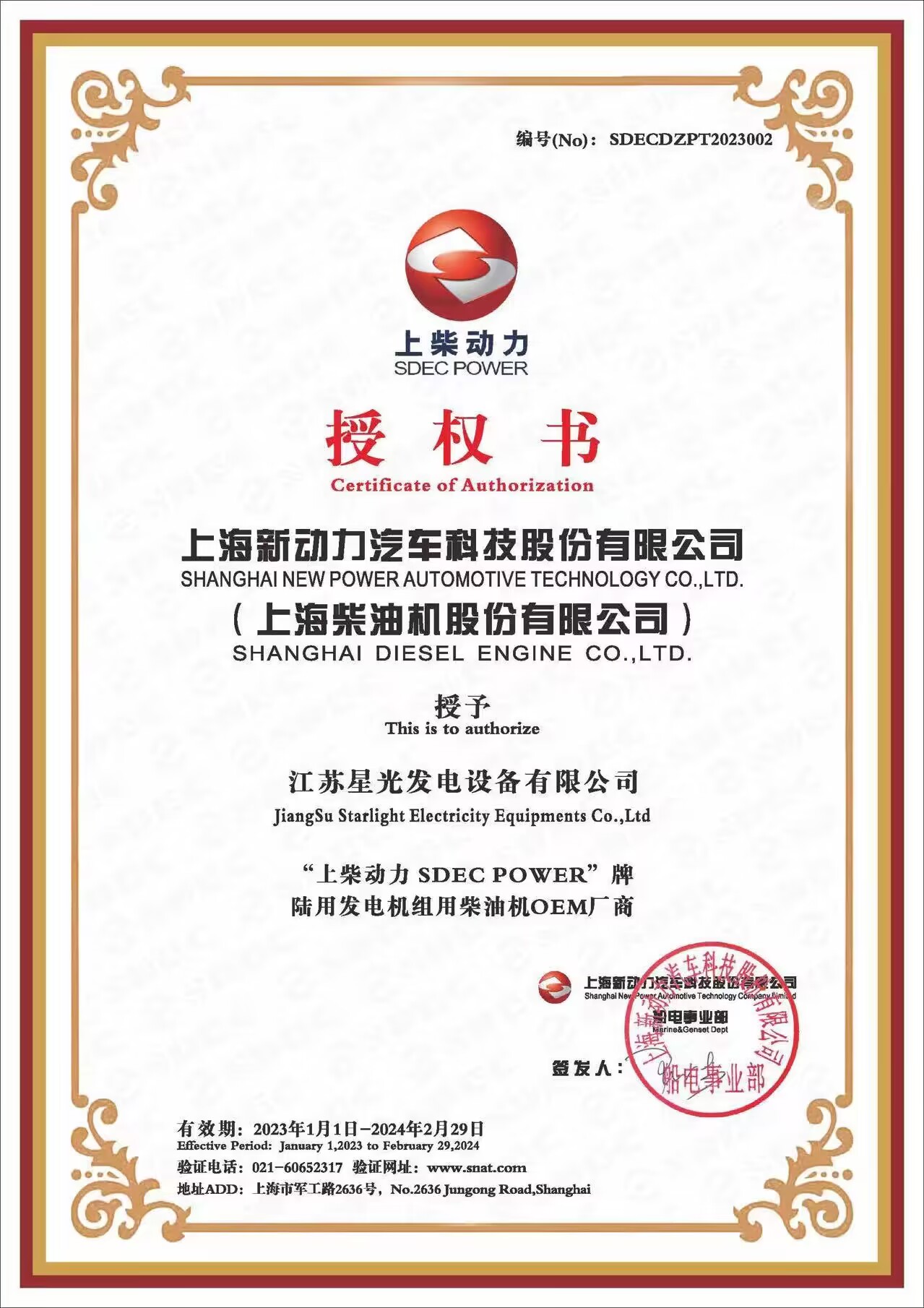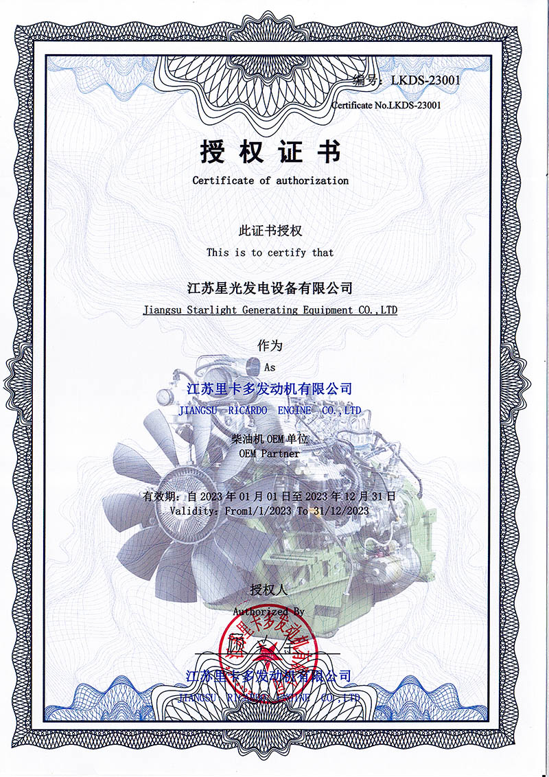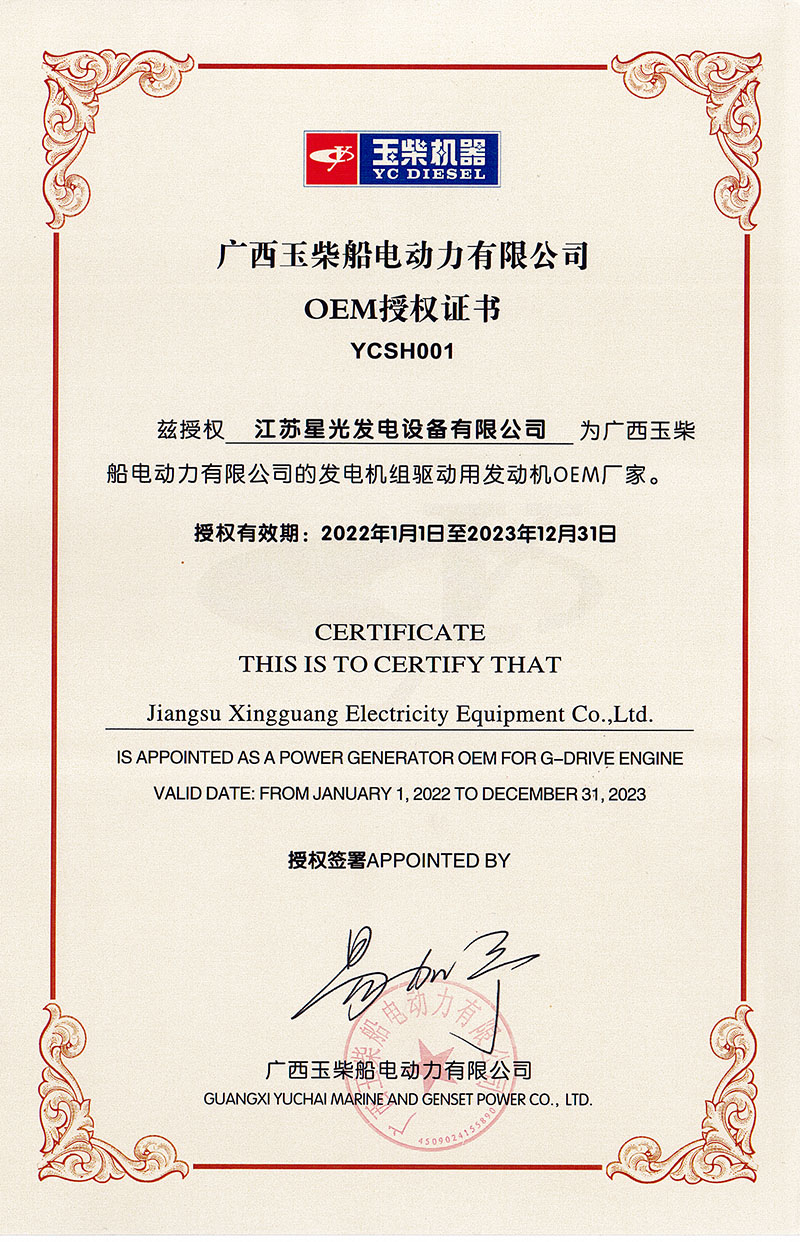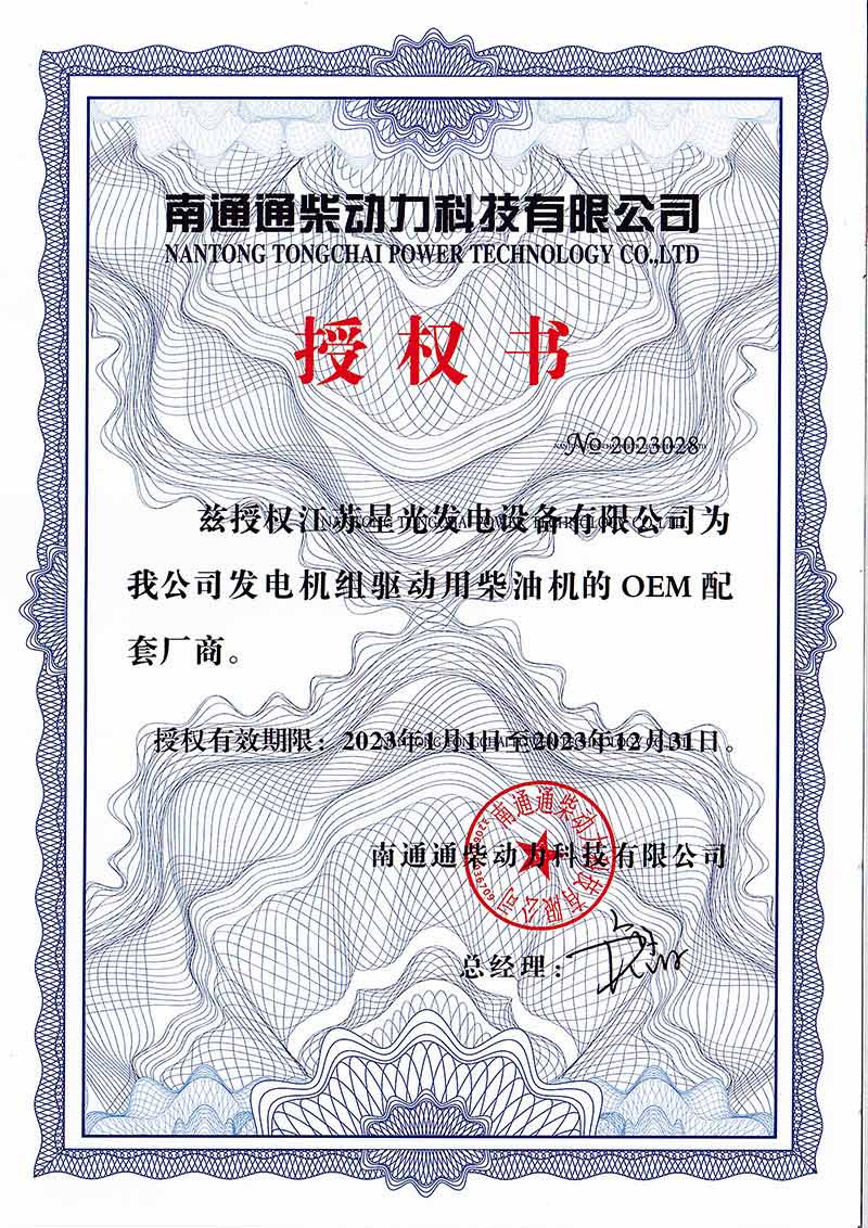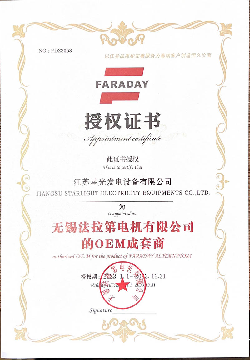 上海孚創(chuàng)動力電氣有限公司OEM授權證書
